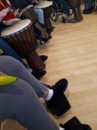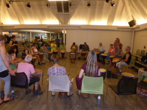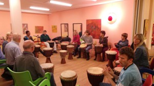Het bracht een hoop teweeg, onze djembé workshop bij zorginstelling #Naarderheem afgelopen zaterdagochtend. Ons nieuwe percussiemateriaal (bananen, sinaasappels, aubergines) vond gretig aftrek, zowel bij de revaliderende bewoners als bij de familieleden. Ook een arts en verplegend personeel kwamen kijken en deden zelfs mee! Reacties als “wat super dat jullie dit doen”, “dank voor de afleiding voor mijn hele familie”, “wat een sfeer”…daar doen we het voor 🙂